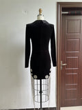 2025 Luxury Diamonds Tassel Sexy Deep V Notched Black Velvet Dress Woman Evening Party Vestido Celebrate Club Party Outfit