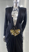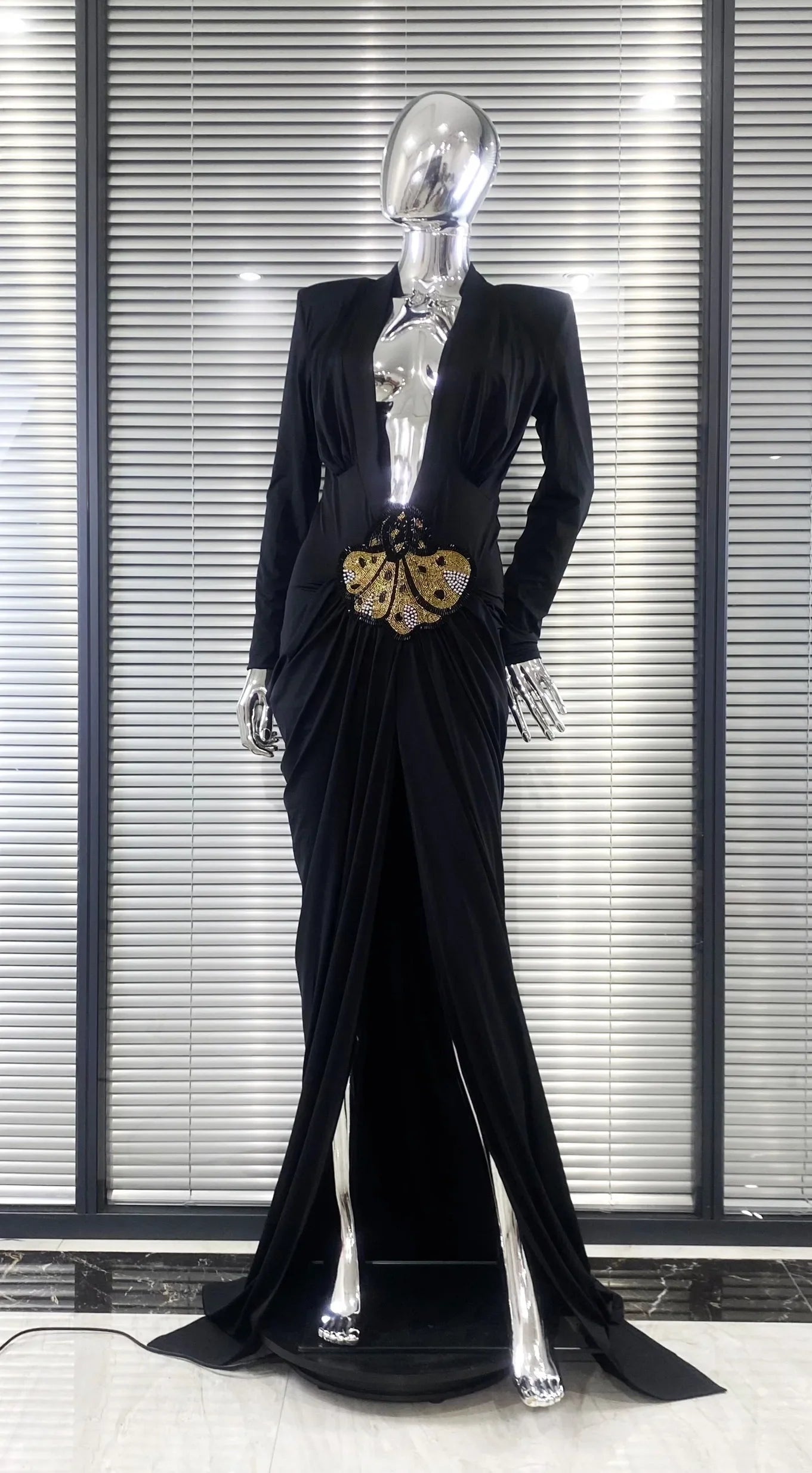 2025 New Beaded Decoration Sexy V-Neck Package Hip Black Floor Length Dress Celebrity Party Dress Woman Cocktail Outfit