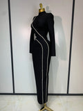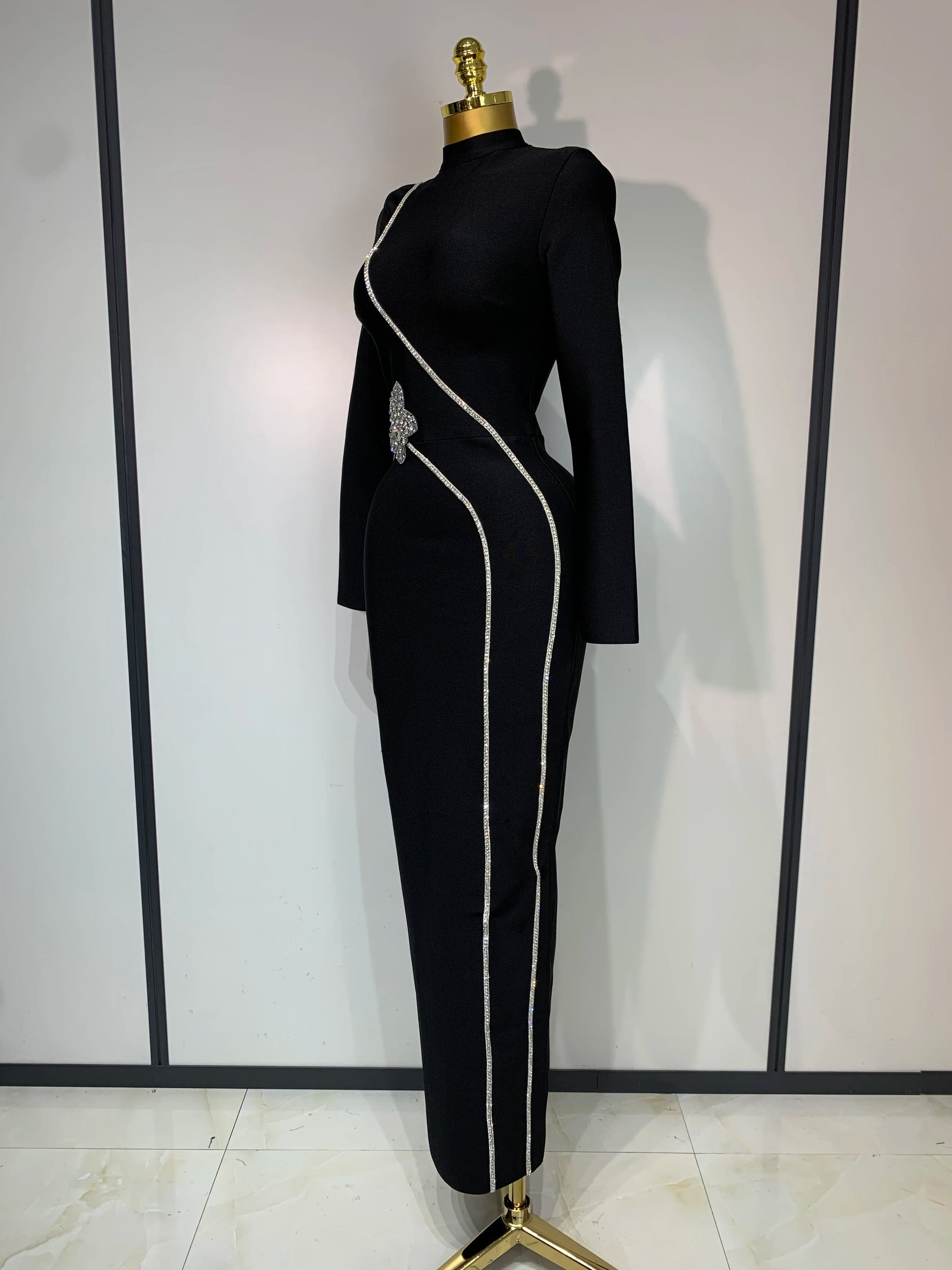 2025 Newest Fashion Designer Party Dress Women's Formal Long Sleeve Diamonds Bodycon Bandage Dress Elegant Luxury Birthday Gown