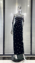 2025 Sparkling Diamonds Fashion Woman Party Dress Strapless Black Bandage Ankle Length Dress Celebrity Birthday Party Outfit