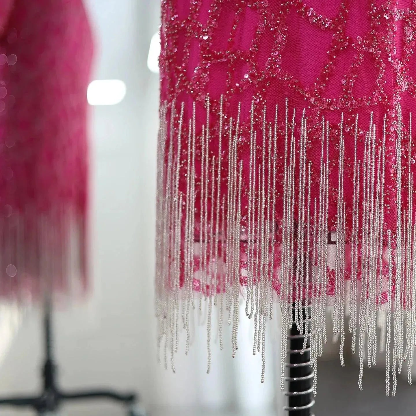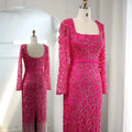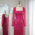 Abiti da sera di lusso Dubai Tassel rosa acceso per le donne eleganti maniche lunghe fucsia abiti da sposa arabi per feste