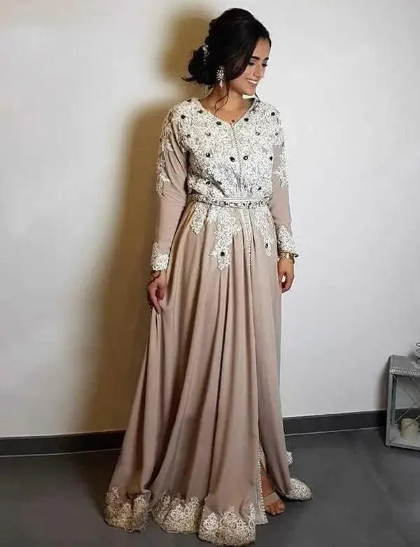 Abiti da sera formali in caftano marocchino con perline in pizzo color rosa antico con maniche lunghe, abiti da ballo per occasioni speciali, abiti da mamma
