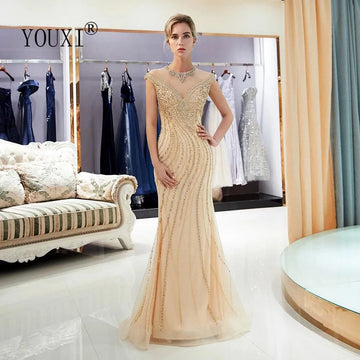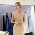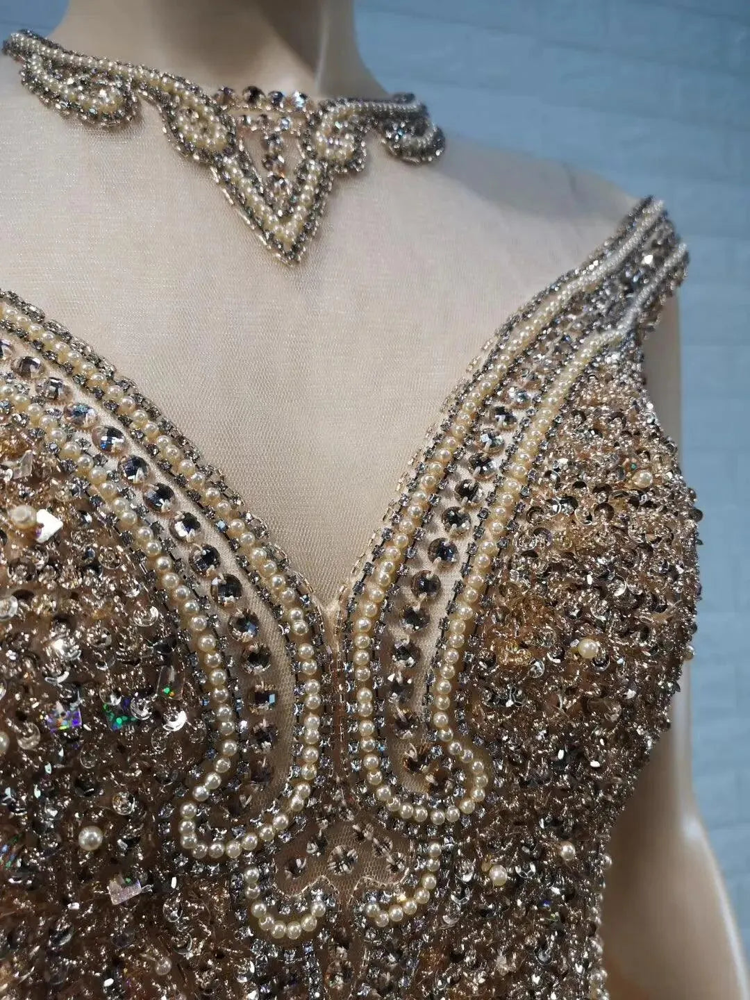 Abiti da sera in oro lunghi sirena Dubai lusso perline perle cristallo sexy trasparente illusione abito da cerimonia formale Abendkleider