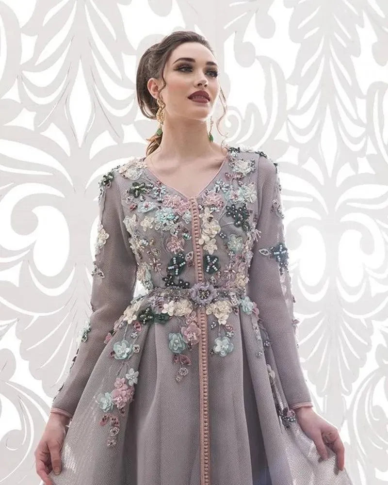 Abiti da sera lunghi Affascinanti fiori 3D Dubai Caftano marocchino Vestido De Fiesta De Boda Abiti formali De Soirée