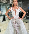 Abiti da sposa a sirena con piume avorio Floria di lusso per le donne, abiti da sposa con strascico staccabile, abiti da ballo formali per le nozze