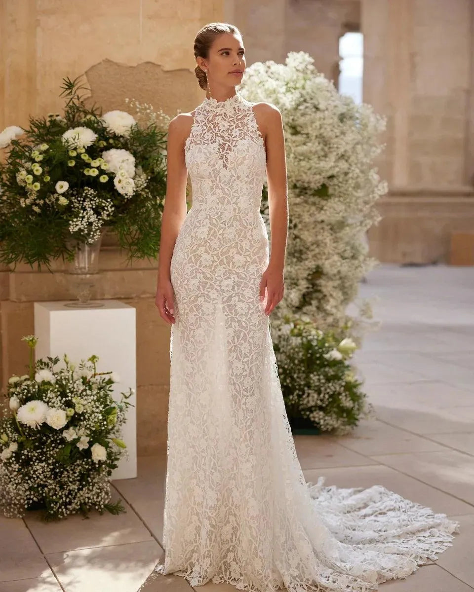 Abito da sposa con schiena scoperta e silhouette sottile Vestido De Novia Abito da sposa moderno da principessa con fiocco in raso, strascico a sirena in raso