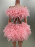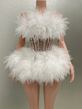 Celebrity Nightlcub Party Birthday Photo Shoot Dress Women Sexy Strapless Mesh Ruffles 2 Pieces Ball Gown Mini Dress