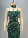 Dark Green Shining Sequin Neck Chain Strapless Ankle Length Dress Woman Cocktail Party Dress Celebrity Birthday Party Vestido