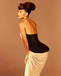 Regardless of the color you select for your dress, the white, black, or ivory lace accents will remain consistent. This applies to designs where the bodice and skirt are in different colors, maintaining a harmonious and sophisticated aesthetic.