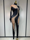 Fashion Sparkly Rhinestone Bodycon Bodysuit Female Singer Dancer Stage Perform Outfit Luxury Birthday Club Drag Queen Costume