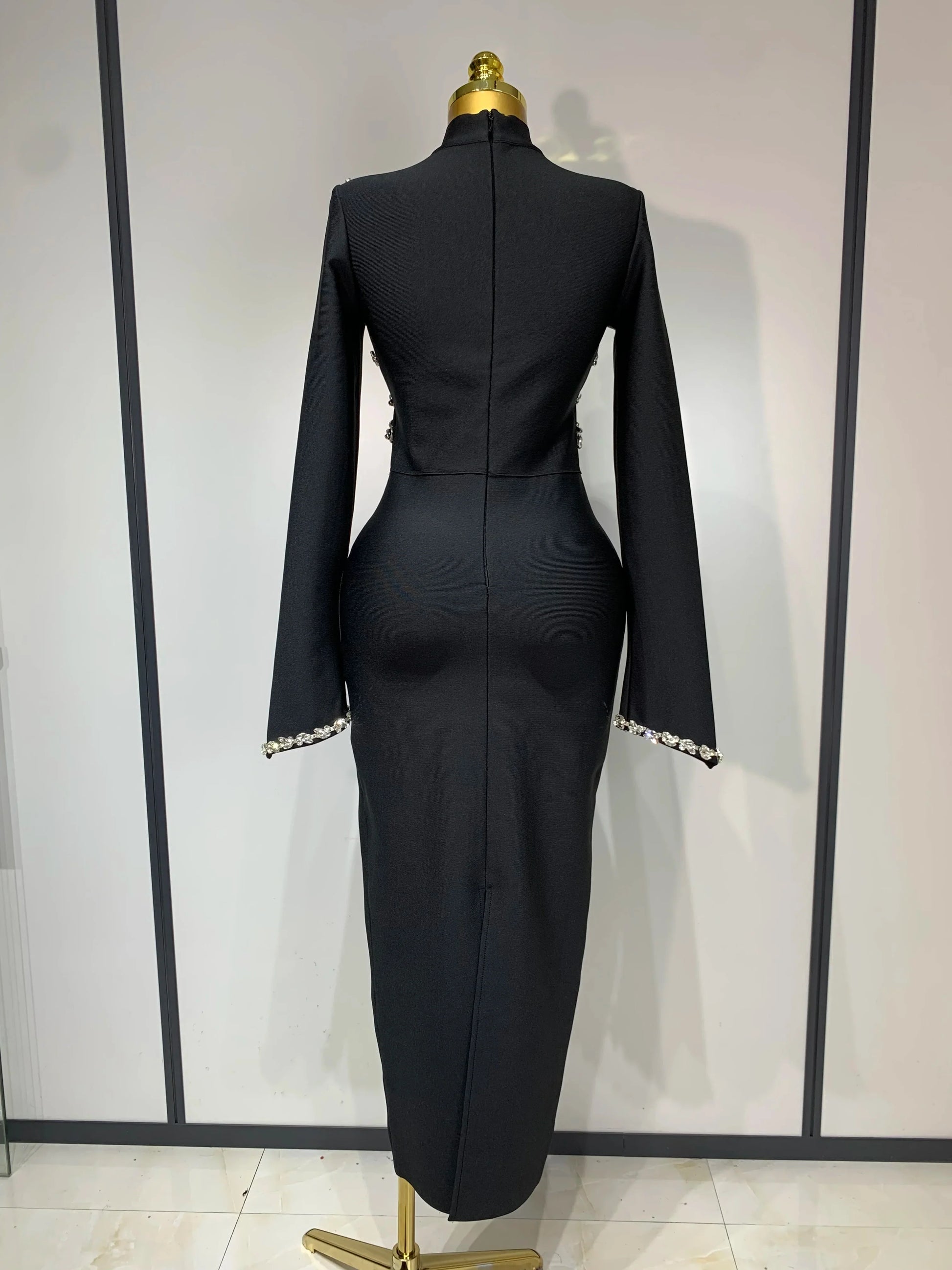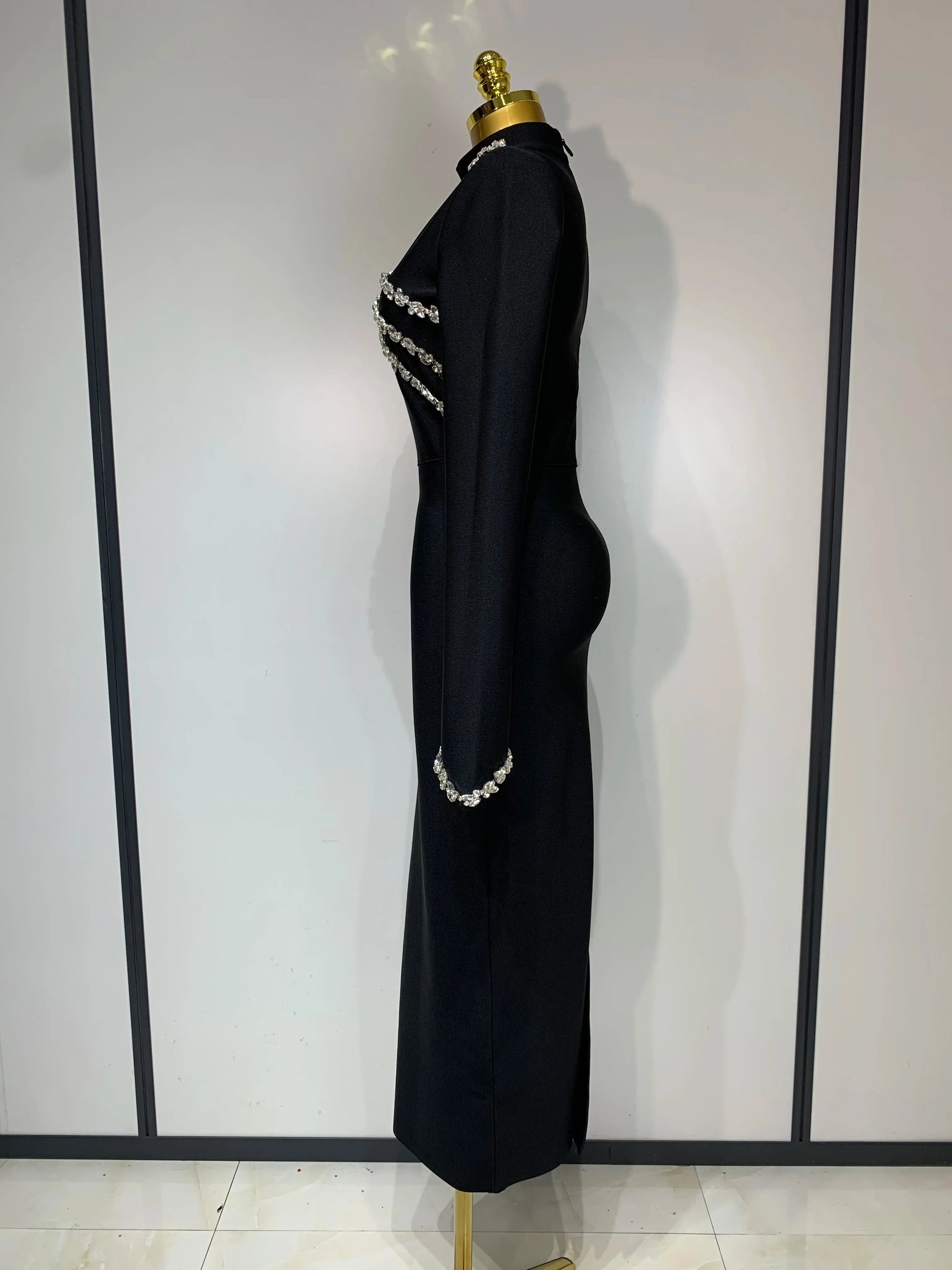 Women Long Sleeve Shinning Crystal Bodycon Long Bandage Dress Celebirty Elegant Evening Party Luxury Birthday Dress