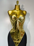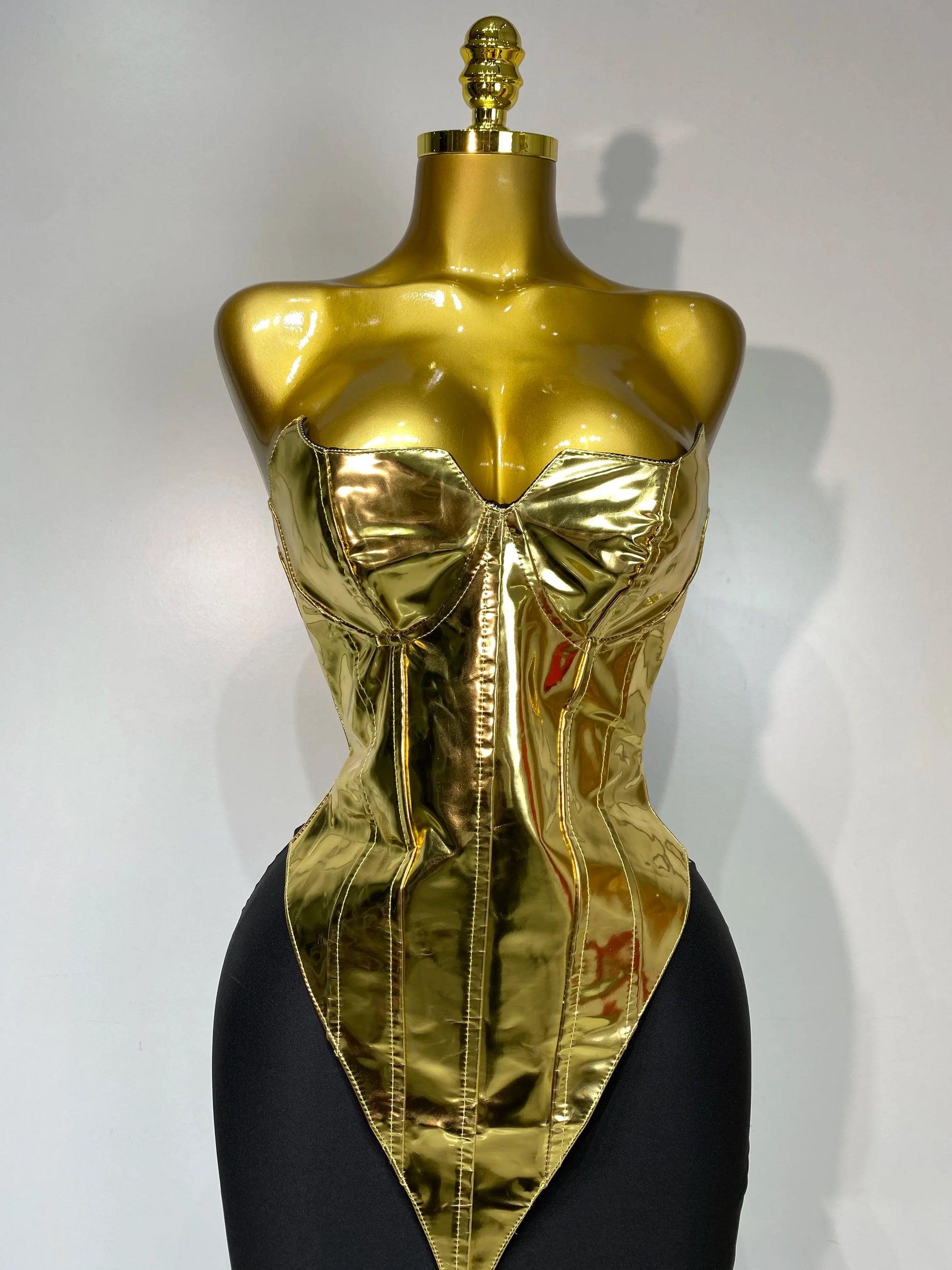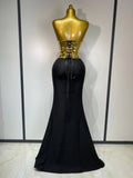 Women Sexy Strapless Gold Two Piece Set Celebrity Elegant Evening Party Maxi Skirt Suit Luxury Birthday Club Gown