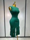 Luxury Birthday Dress Sexy O Neck Sleeveless Hollow Out Fringe Dress Women Green Slim Dresses Elegant Evening Party Club Gowns