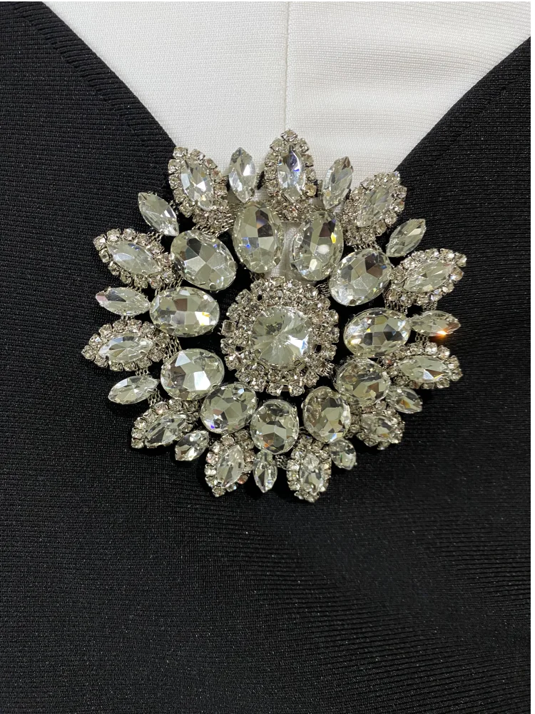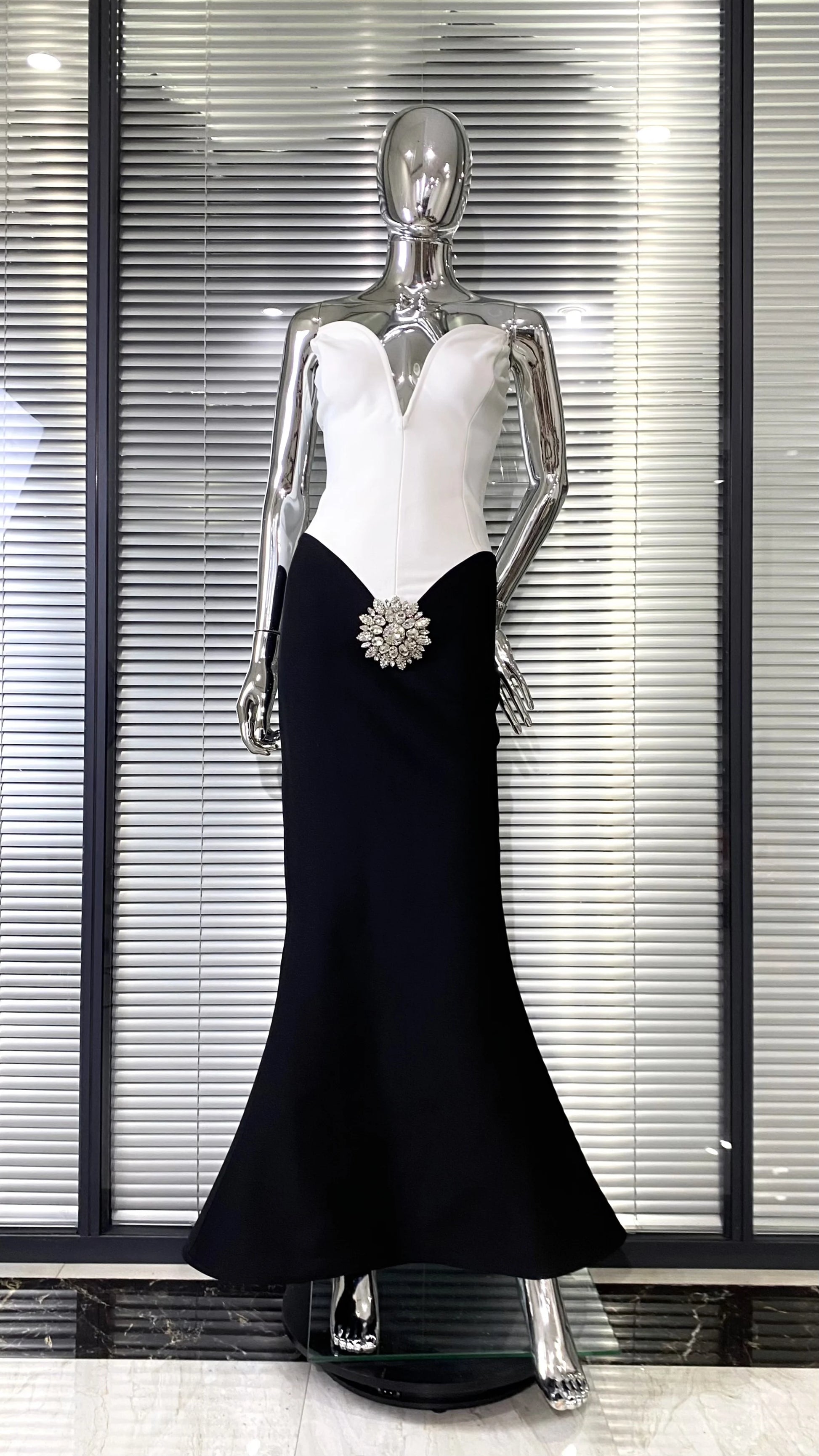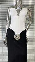 Luxury Diamonds Strapless Package Hips White Patchwork Black Bandage Dress Fashion Woman Party Dress Celebrity Party Vestido