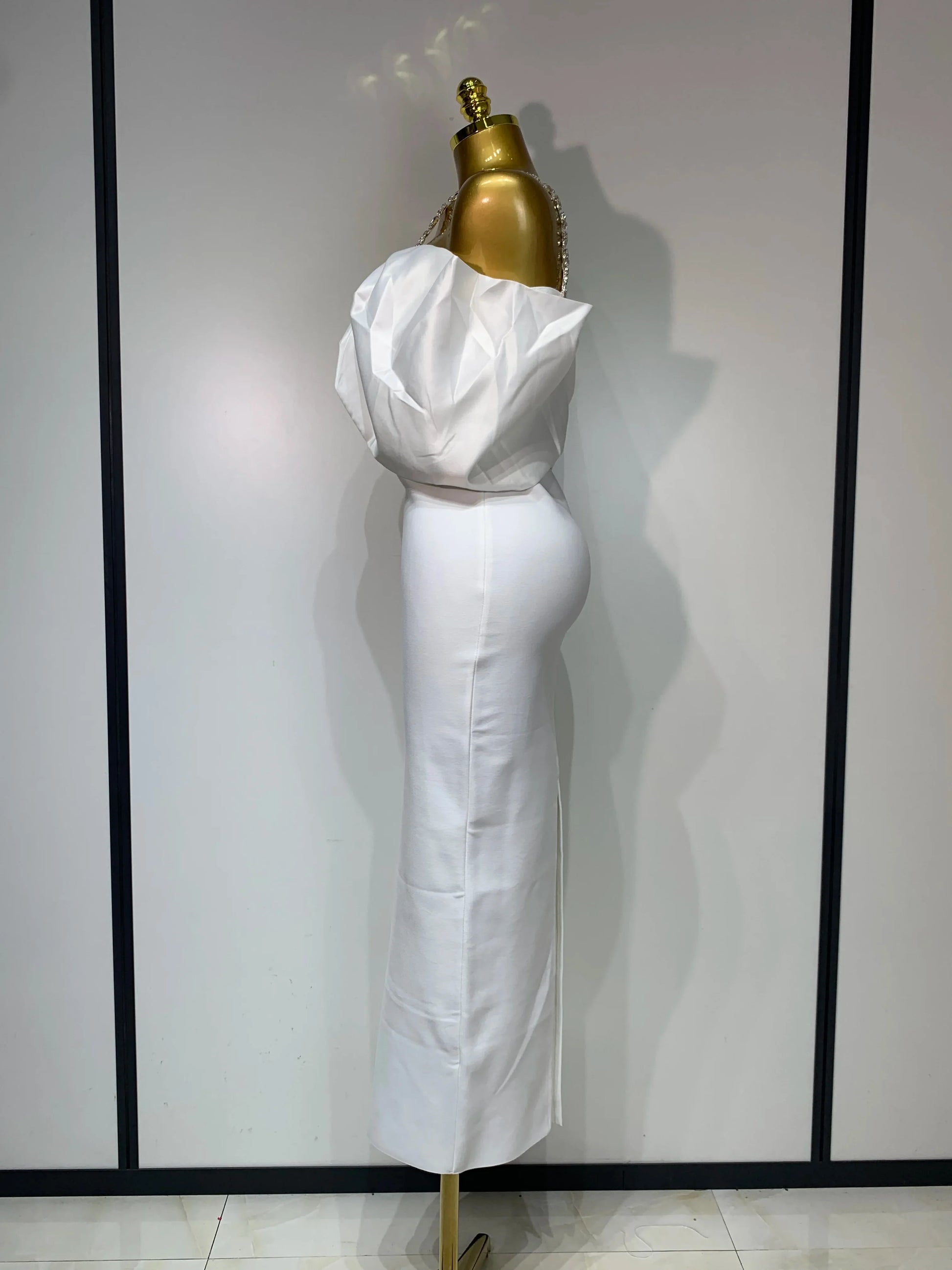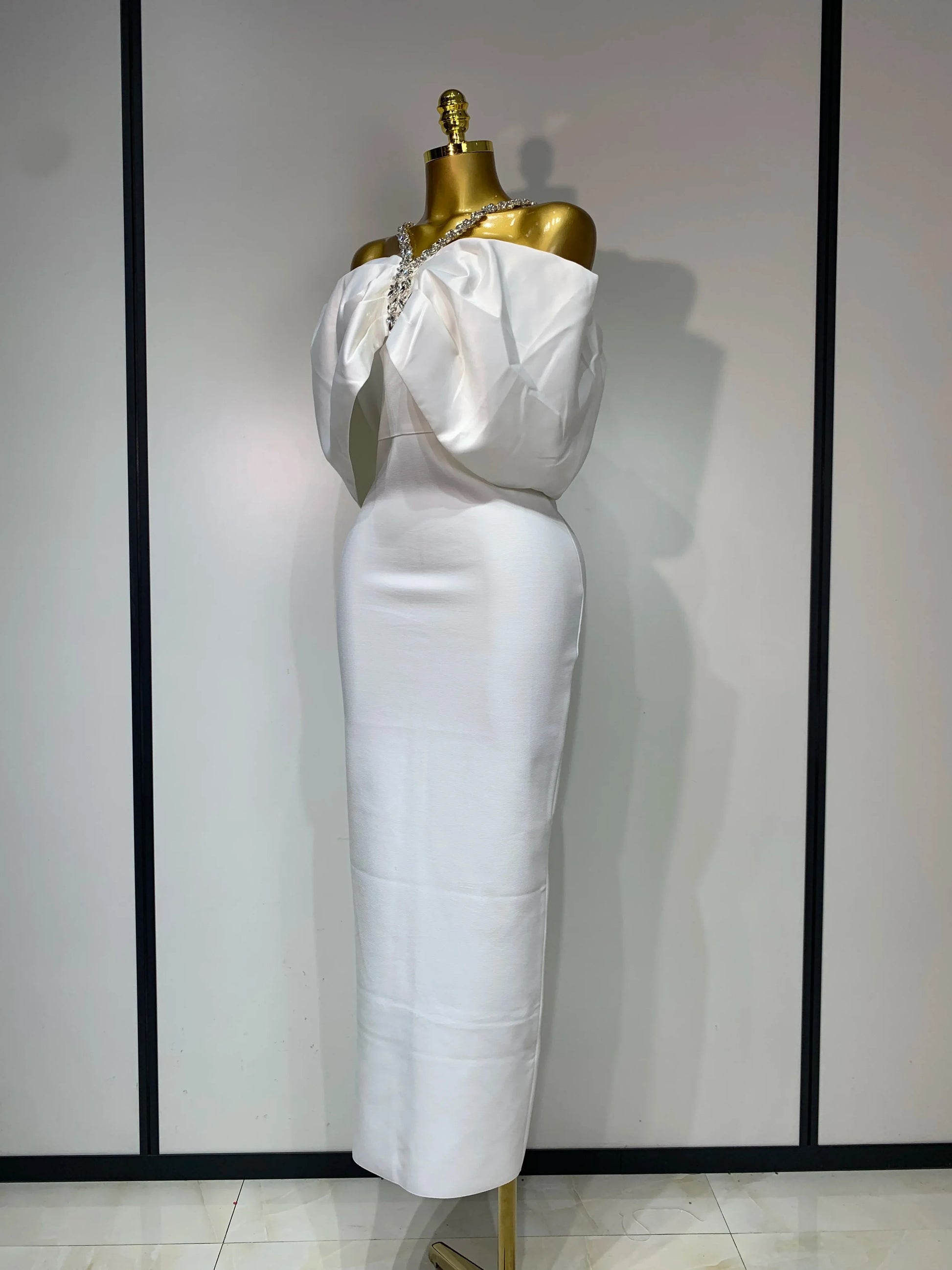 Luxury Rhinestone Chain Off Shoulder Vintage Butterfly Chic Bodycon Dress High Street Elegant Evening Party Birtyday Clothing