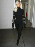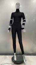 Shining Diamonds Sleeve Black Bodycom Bandage Jumpsuit Fashion Woman Party Outfit Nightclub Performance Costume