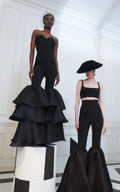 Stylish Flare Pants Strapless Black Bandage Jumpsuit Woman Fashion Party Outfit Nightclub Performance Costume