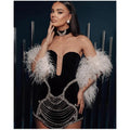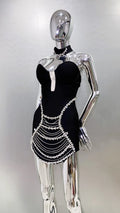 New Stylish Necklace Shining Diamonds Strapless Black Bandage Mini Dress Fashion Woman Party Vestido Celebrity Birthday Outfit