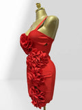New Summer Stereoscopic Flowers Sexy Hollow Out Spaghetti Red Bandage Mini Dress Sweet Woman Party Dress Birthday Party Vestido