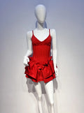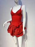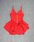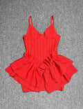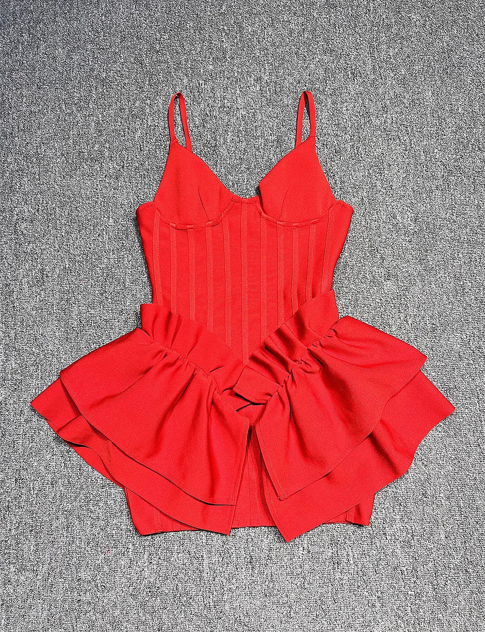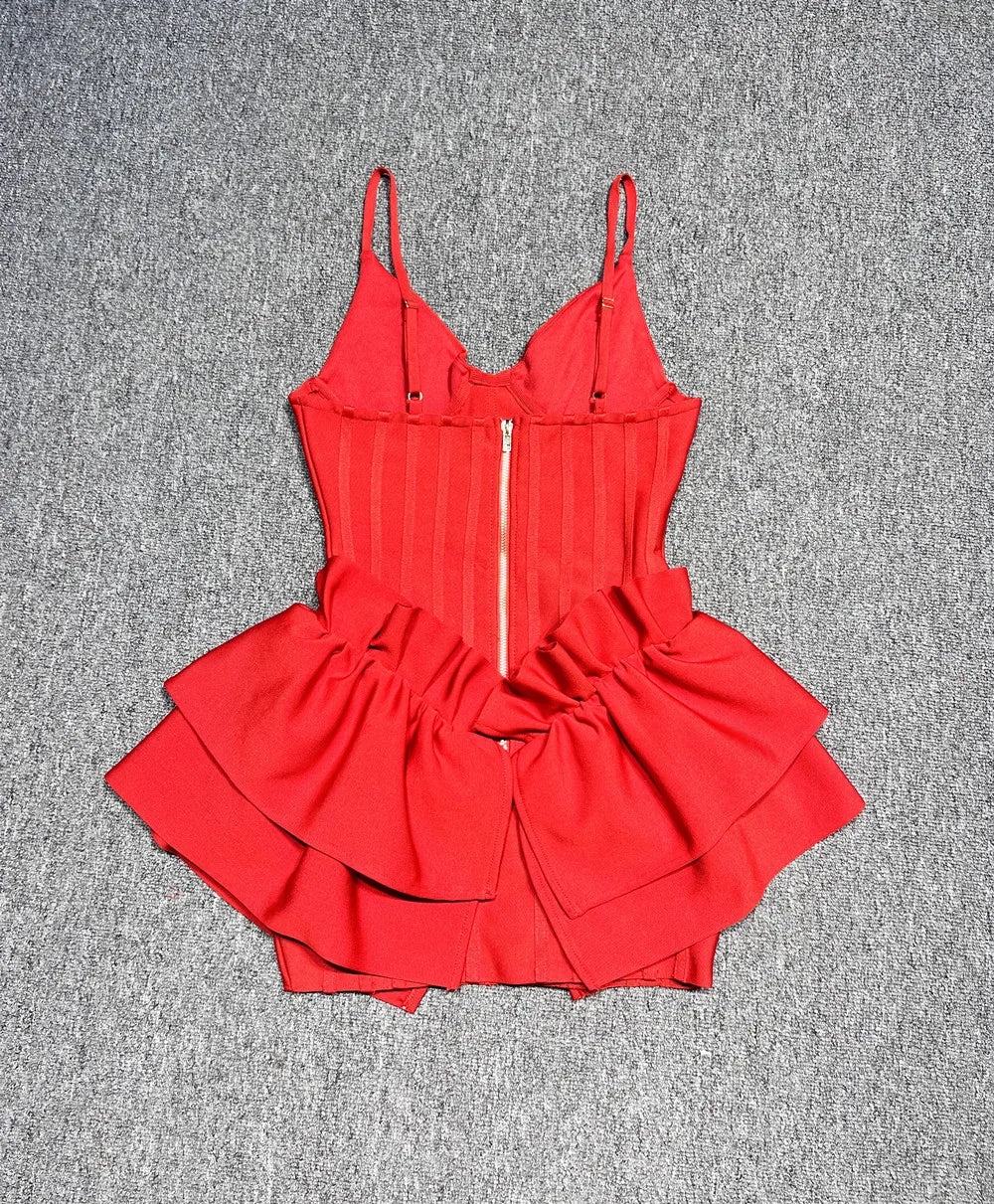 Red Color Women Sleeveless Sexy V-Neck Bodycon Mini Bandage Dress Ruffles Fashion Celebrate Birthday Party Girls' Dress Vestido