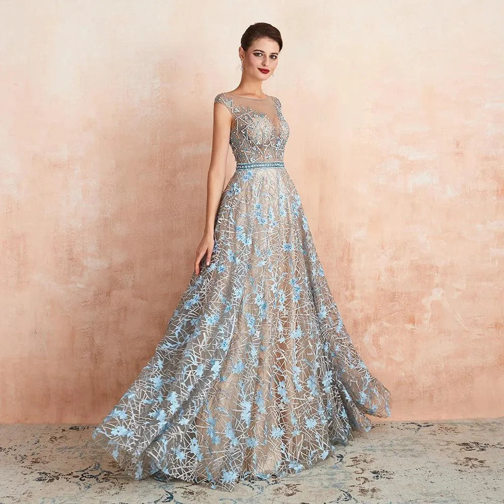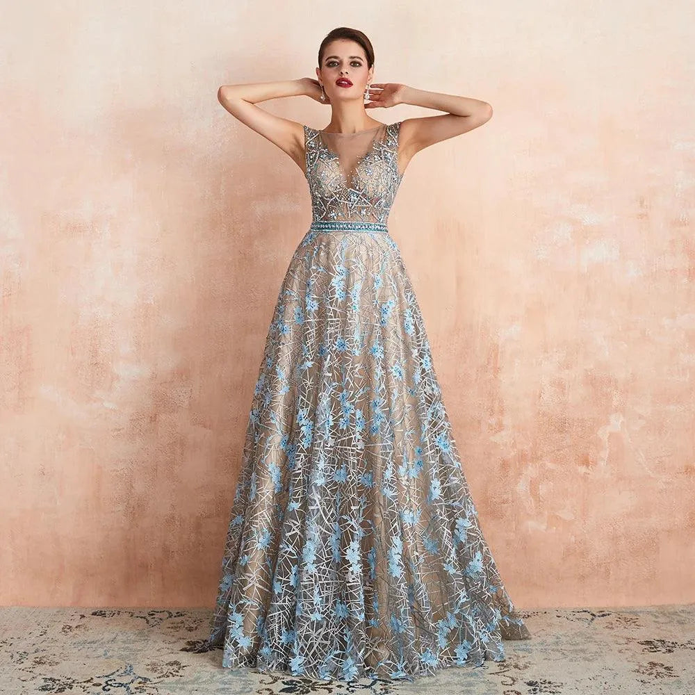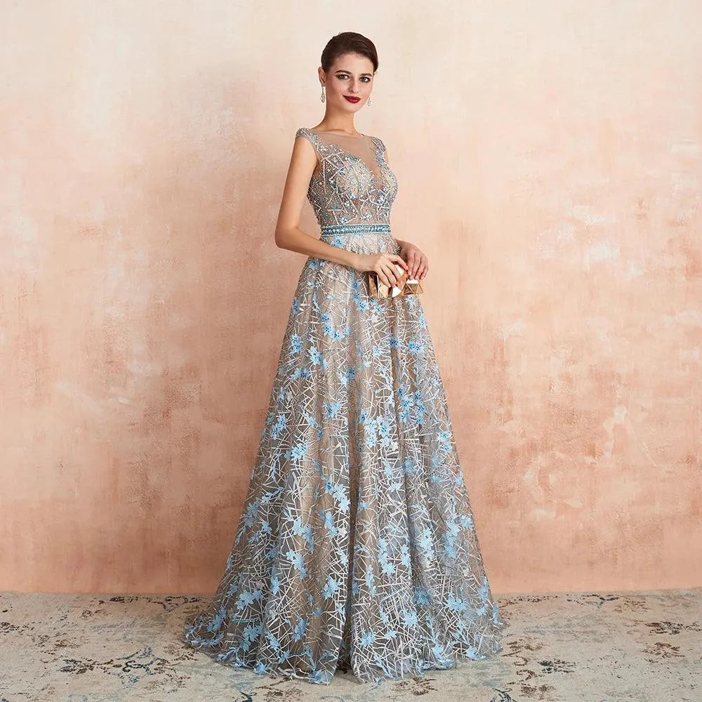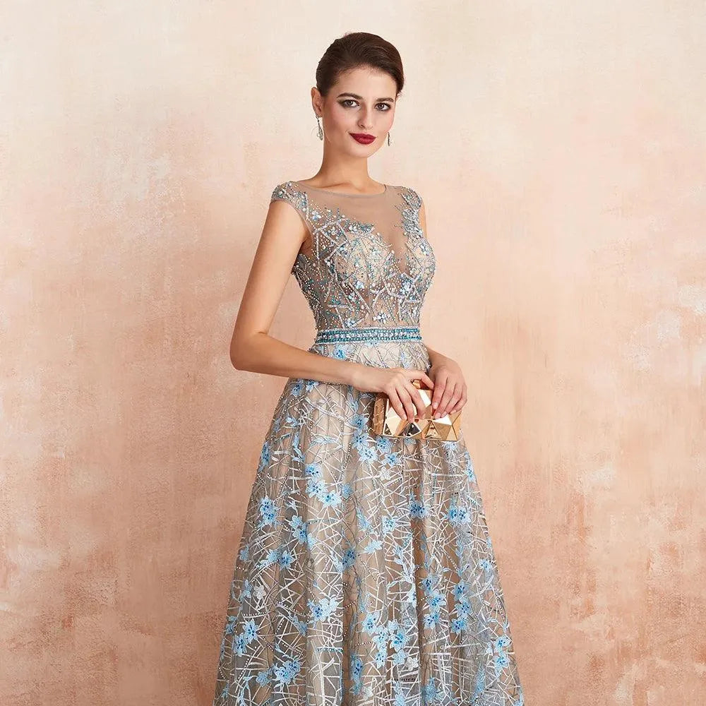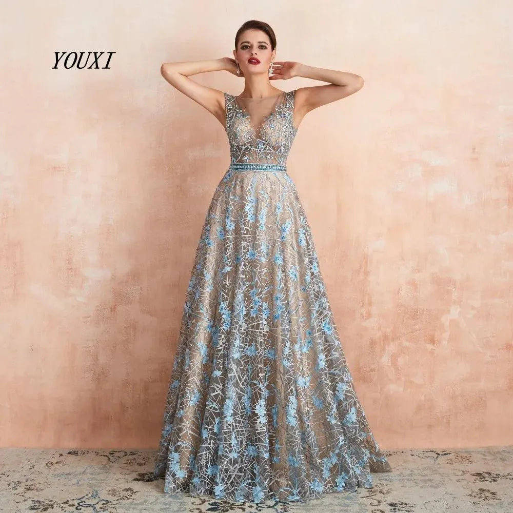 Robe de Soiree personalizzato Splendido abito da sera YOUXI Pizzo Perline Cristallo Strass Collo trasparente Abito da sera formale Lungo