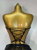 Regardless of the color you select for your dress, the white, black, or ivory lace accents will remain consistent. This applies to designs where the bodice and skirt are in different colors, maintaining a harmonious and sophisticated aesthetic.