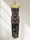 Shining Black Sequins Sexy Mesh See Through Straplerss Ankle Length Dress Woman Birthday Party Dress Celebrity Party Vestido