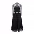 Regardless of the color you select for your dress, the white, black, or ivory lace accents will remain consistent. This applies to designs where the bodice and skirt are in different colors, maintaining a harmonious and sophisticated aesthetic.