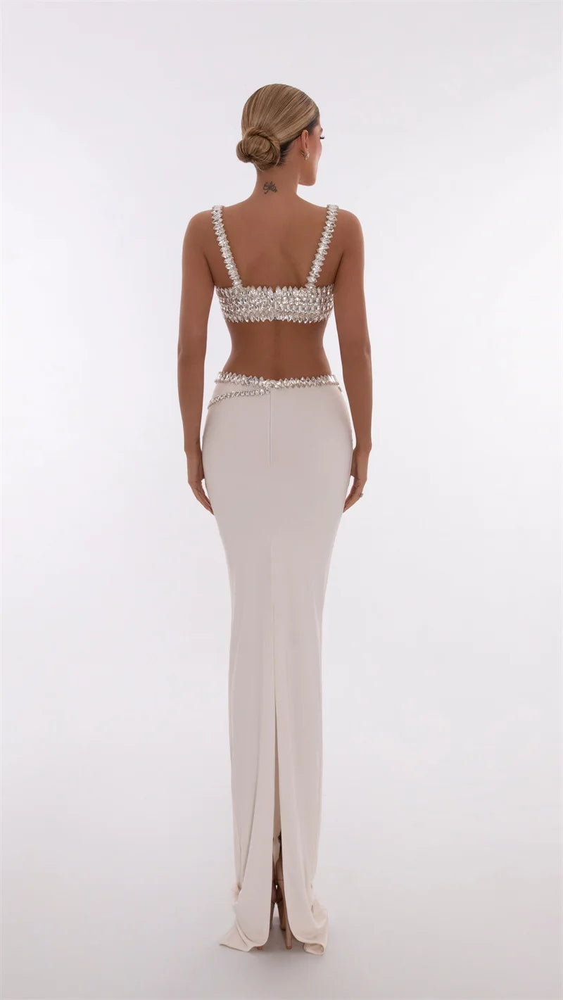 Sparkling Diamonds Woman Set Spaghetti Strap Top And Ankle Lenght Skirt 2 Pieces Evening Party Vestido Beach Vocation Outfit