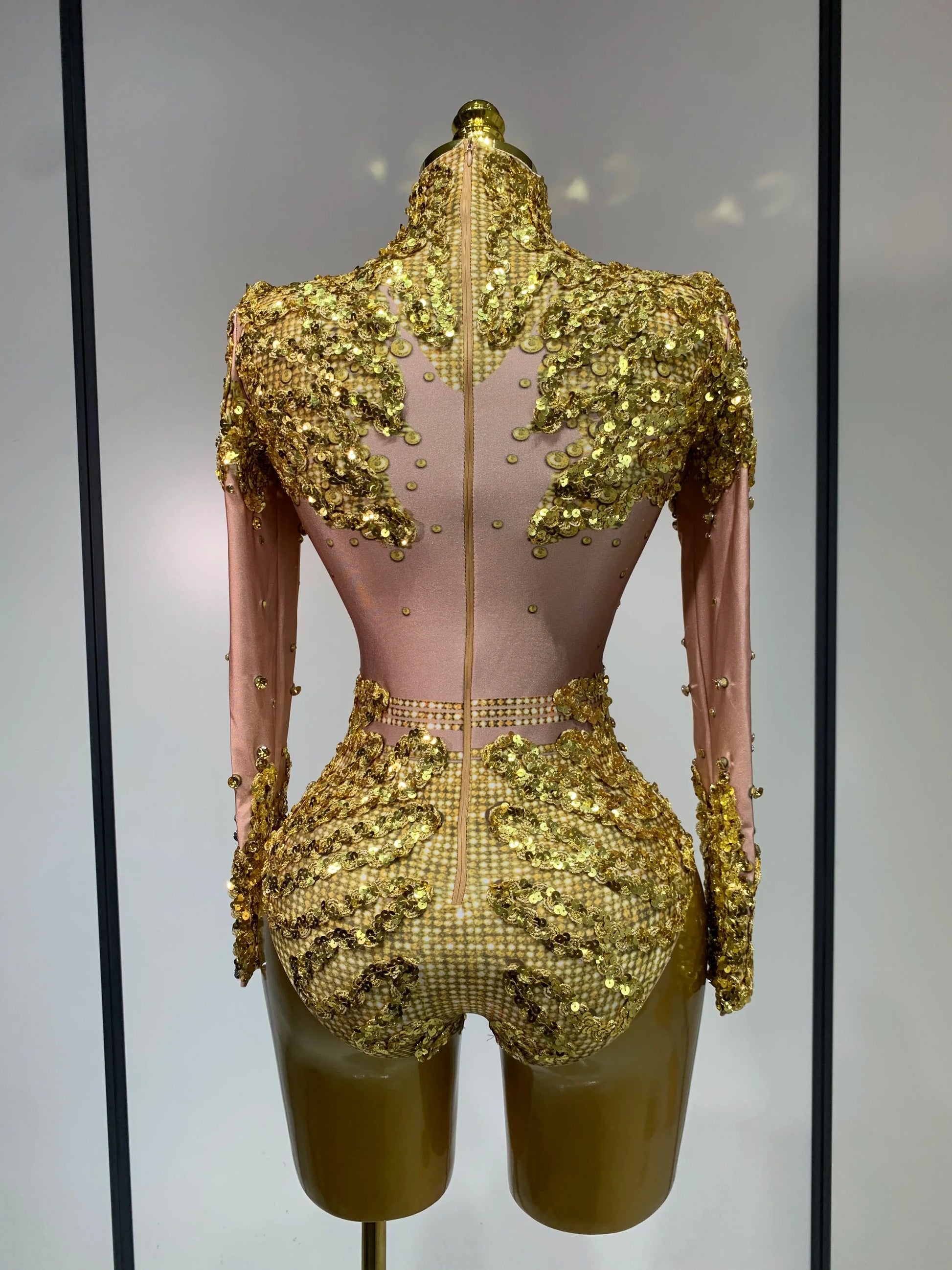 Sparkly Gold Rhinestone Sequin Stretch Bodysuits 2025 Women Luxury Birthday Party Nightclub Dancer Stage Performance Costume