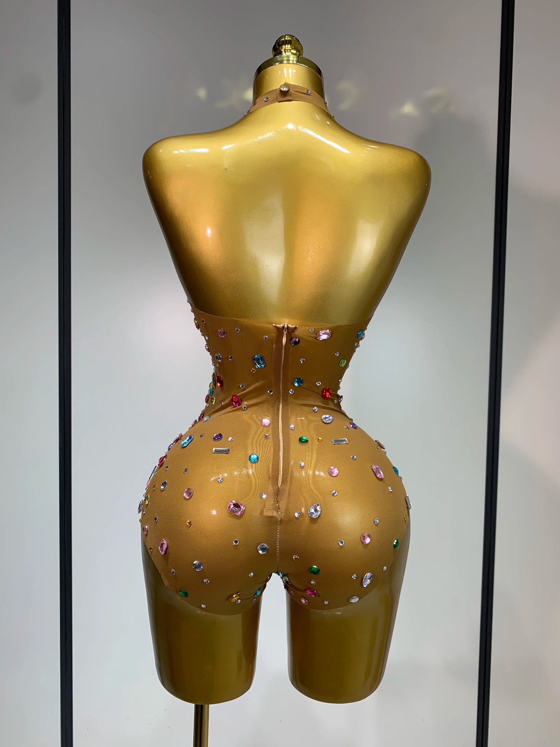 Sparkly Rhinestones Mesh See Through Bodysuit Women Sexy Backless Performance Dance Costume Celebrity Nightclub Stage Outfit