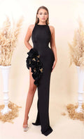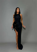 Stereoscopic Flowers Buttons Sexy High slit Ankle Sleeveless Lenght Bandage Dress Woman Evening Party Dress Party Vestido