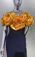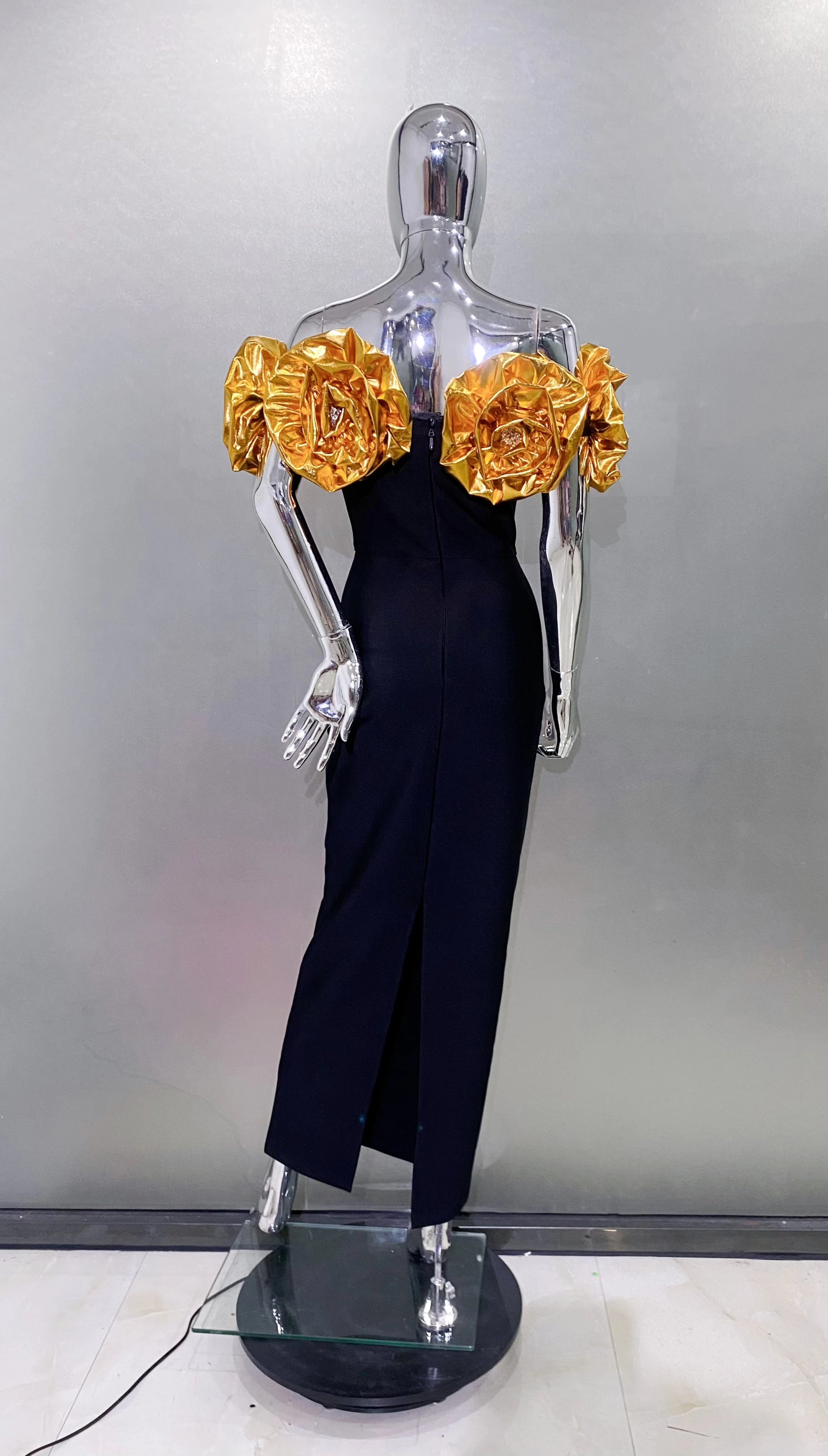 Stereoscopic Gloden Flowers Sexy Off The Shoulder Ankle Lenght Bandage Dress Woman Birthday Party Vestido Wedding Party Outfit