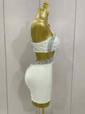 Luxury Shiny Diamond Chain White Sexy Sleeveless Bodycon Mini Dress New Evening Birthday Party Nightclub Stage Costume