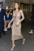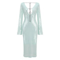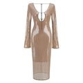 STOCK New Autumn Sparkling Sequins Sexy V-Neck Hollow Out Aklen Length Dress Fashion Woman Evening Party Outfit