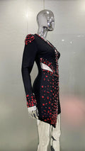STOCK Red Diamonds Beading Sexy Hollow Out Black Mini Bandage Dress Luxury Woman Evening Party Dress Birthday Party Outfit