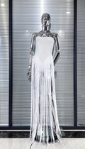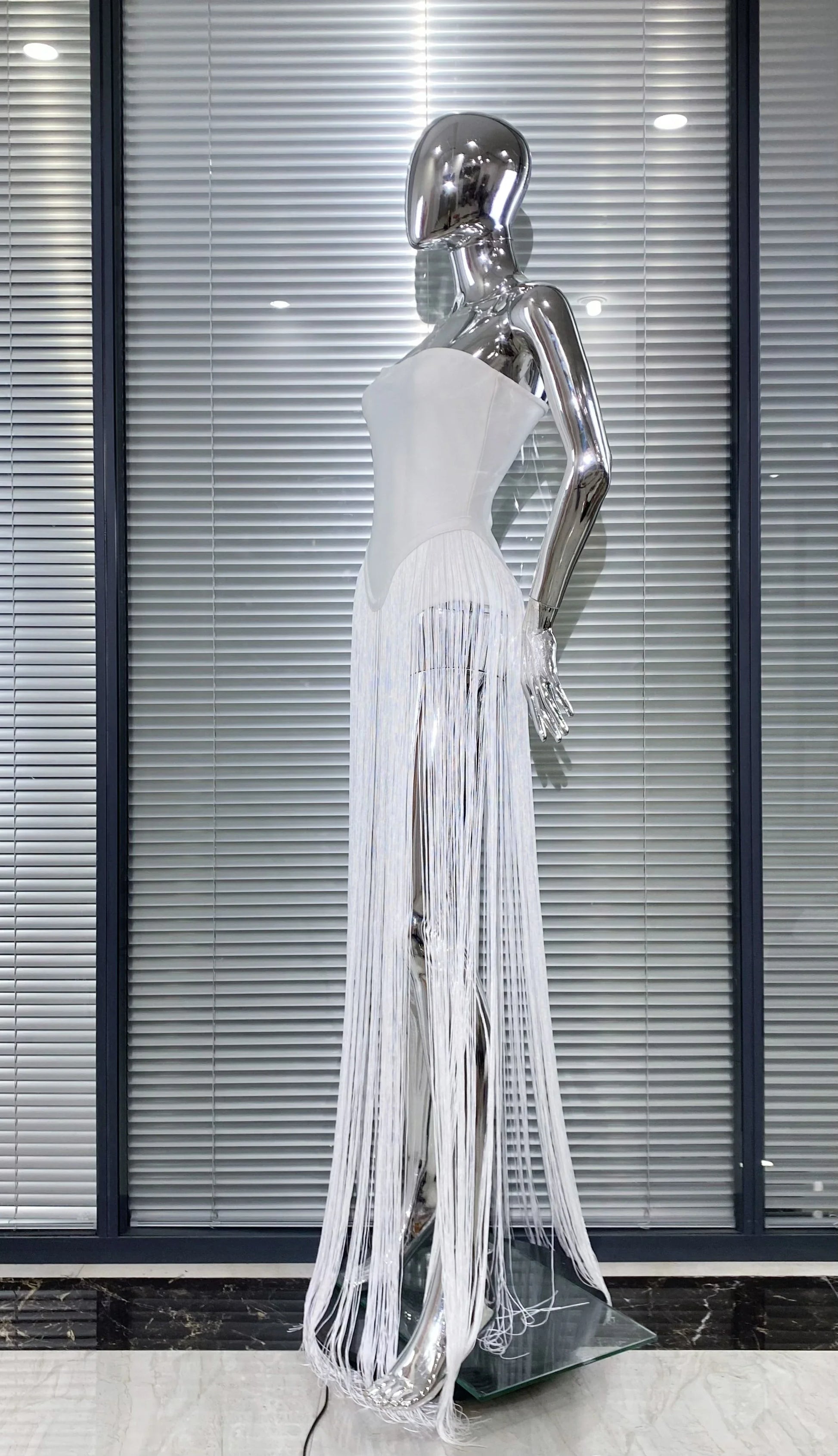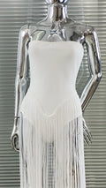 Summer White Color Long Tassel Strapless Bandage Jumpsuit Fashion Woman Party Bodysuit Vestido Performances Costume