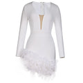White Black Color Women Long Sleeve Sexy Bodycon Mini Bandage Dress Feathers Sexy Nightclub Party Celebrate Birthday Dress