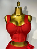 Women Red Top Flower Skirt Two Piece Set Evening Party Nightclub Elegant Host Tight Sexy Club Bodycon Bandage Long Skirt