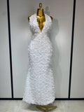 Women Sexy Backless Halter V-neck Florals Bodycon Long Dress Celebrate White Elegant Evening Party Luxury Birthday Outfit