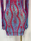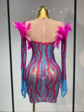 Women Sexy Mesh See Through Diamond Feather Dress 2025 Elegant Evening Party Luxury Birthday Nightclub Performance Stage Costume