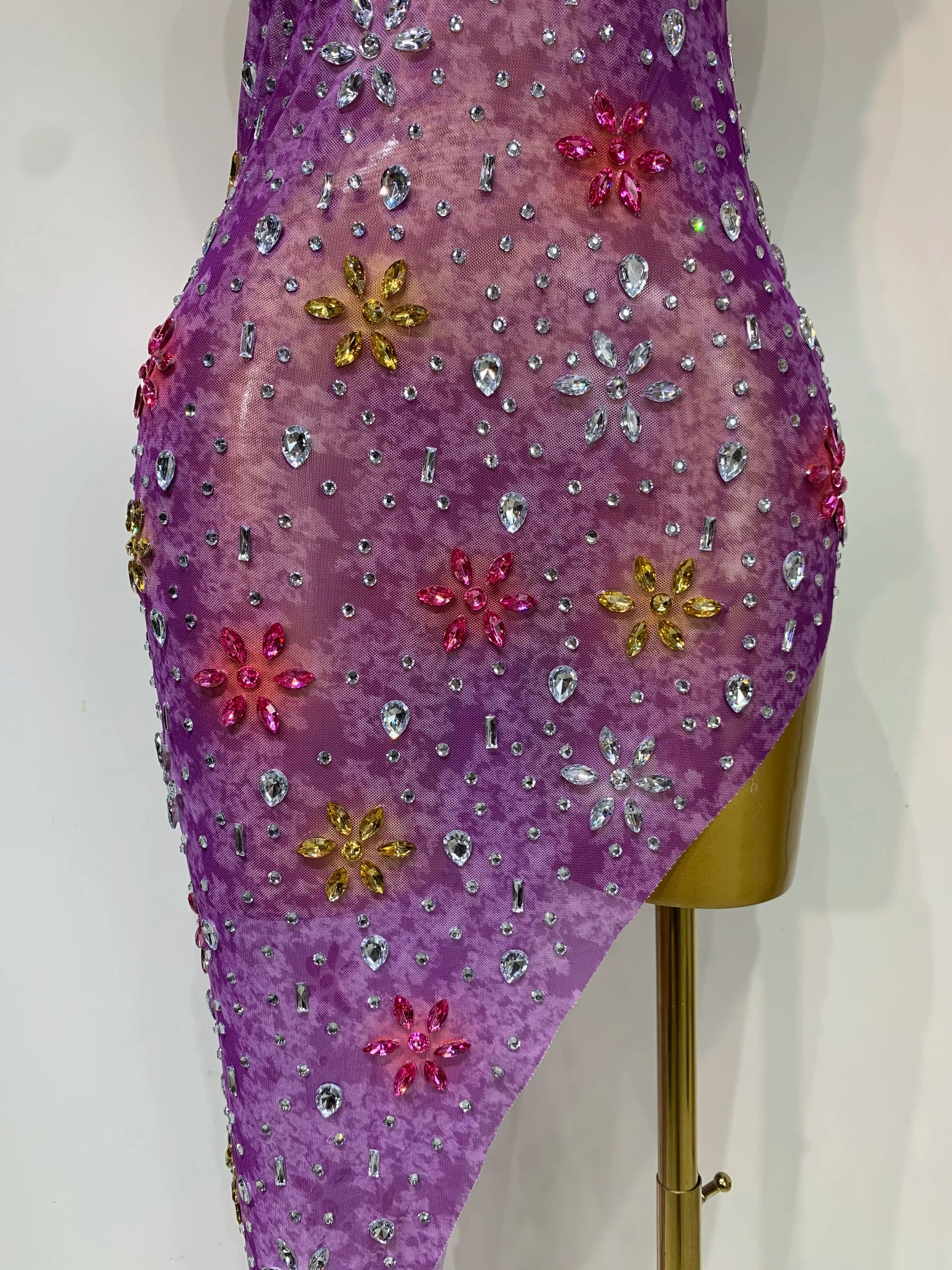 Women Sexy Mesh See Through Stretchy Sparkly Rhinestone Performance Costume Stage Dancer Nightclub Party Luxury Birthday Dress