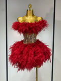 Women Sexy Strapless Mesh Two Pieces Set Celebrity Nightlcub Party Photo Shoot Outfit 2025 Prom Gown Luxury Birthday Dresses
