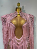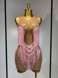 Women Sexy Transparent Long Sleeve Bodycon Dress Two Piece Set Luxury Sequin Fringes Evening Party Celebrity Performance Costume