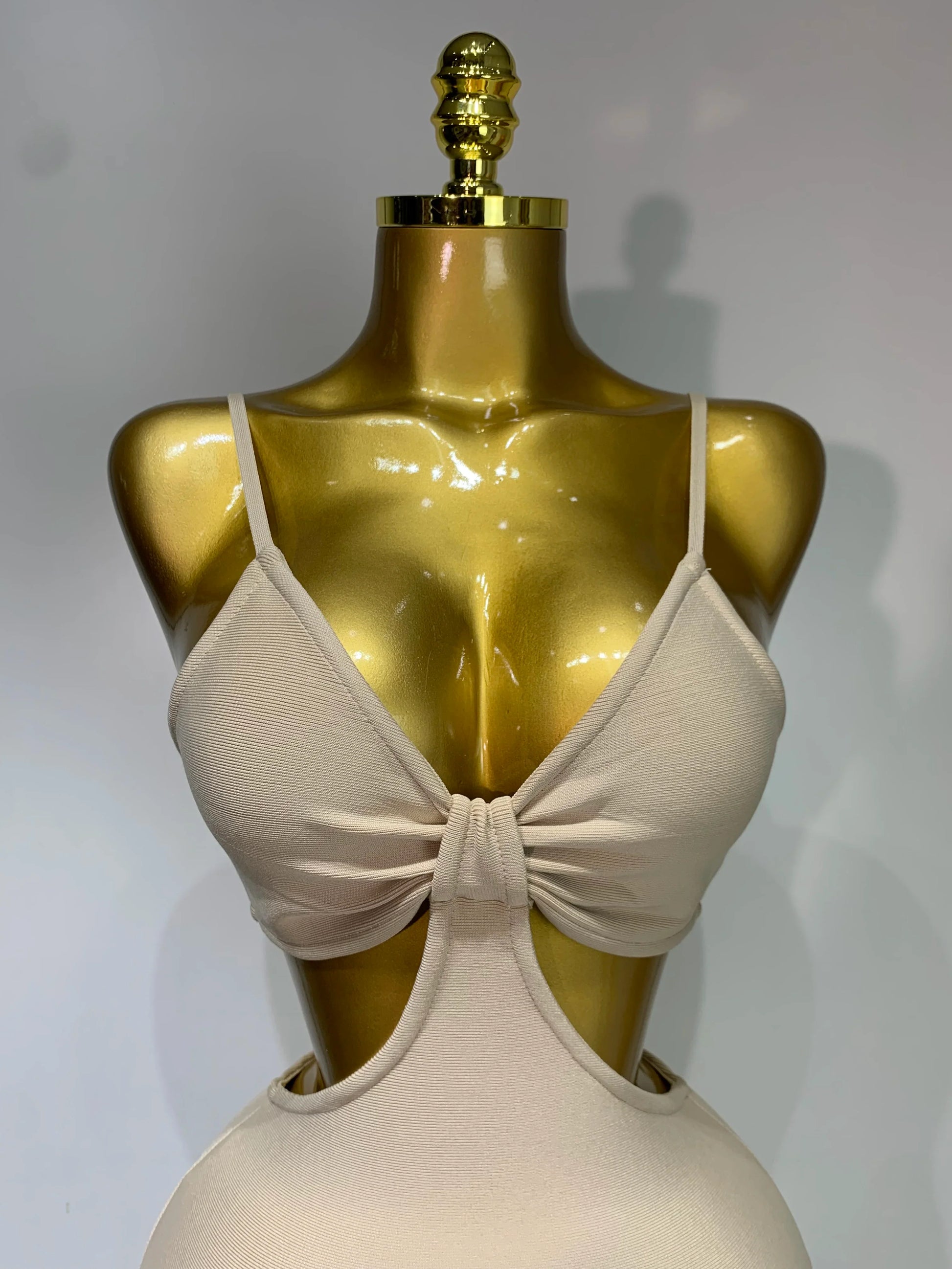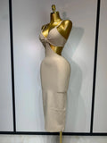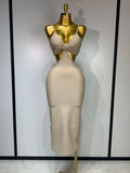 Women Sexy V Neck Backless Khaki Bodycon Bandage Dress 2025 Celebrity Elegant Evening Club Party Luxury Birthday Dress