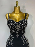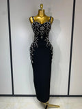 Women Sexy V Neck Black Beading Maxi Long Bodycon Bandage Dress 2025 Celebrity Elegant Evening Club Party Luxury Birthday Dress