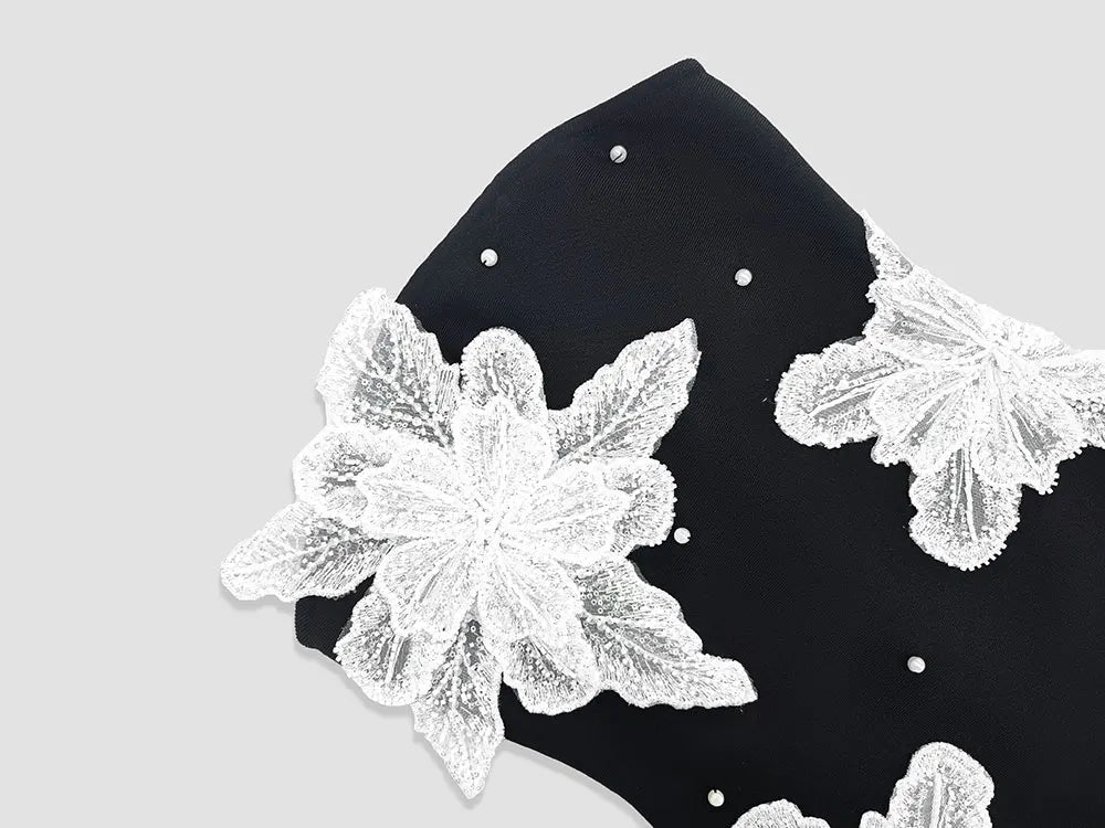 2024 Autumn Wome Strapless Sleeveless Sexy Bandage Dress With Three-Dimensional Flower Bead Design Bodycon Backless Mini Dress