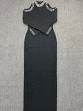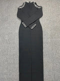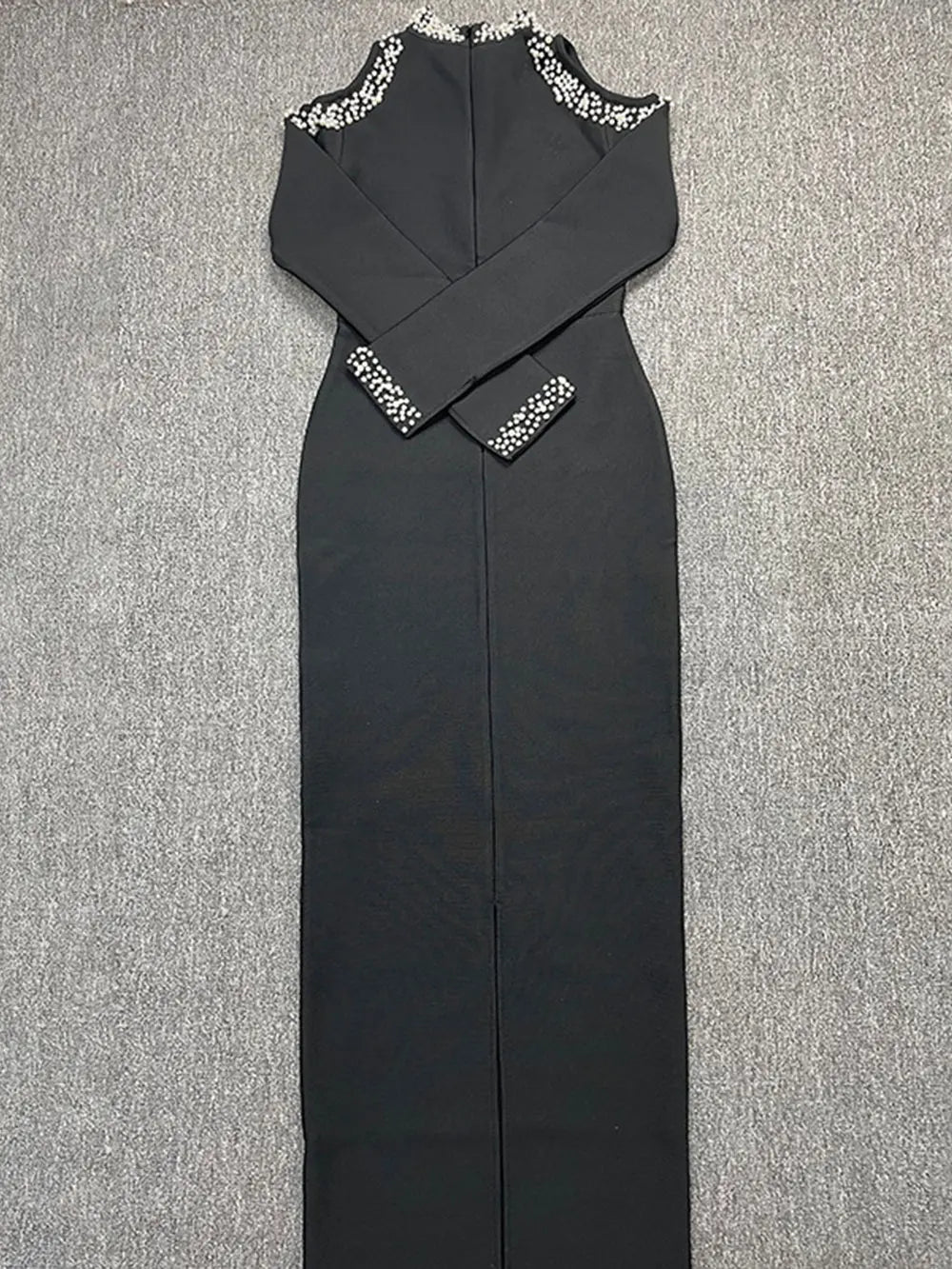 2024 Sexy Women'S Light Luxury Crystal Pearl Design Bandage Dress O-Neck Off Shoulder Long Sleeved Bodycon Christmas Long Dress