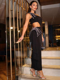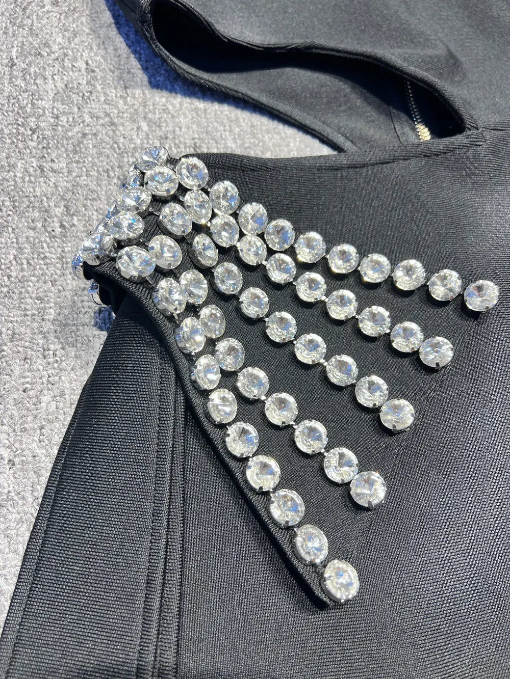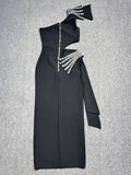 2024 Sexy Women's Light Luxury Nail Diamond Bandage Dress One Shoulder Slant Neck Bodycon Waist Long Dress Evening Party Vestido