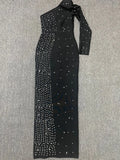 2024 Sexy Women's Light Luxury Pearl Design Bandage Dress with Diagonal Collar One Shoulder Long Sleeve Bodycon Christmas Dress